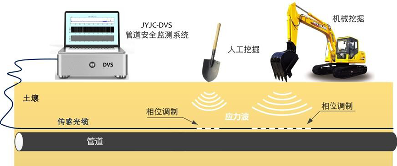 監(jiān)測(cè)那些有可能對(duì)管道安全運(yùn)行造成威脅的外界入侵事件,如第三方施工挖掘。在入侵事件發(fā)生的第一時(shí)間進(jìn)行報(bào)警、定位、事件類型分析,幫助業(yè)主及時(shí)排除安全隱患。